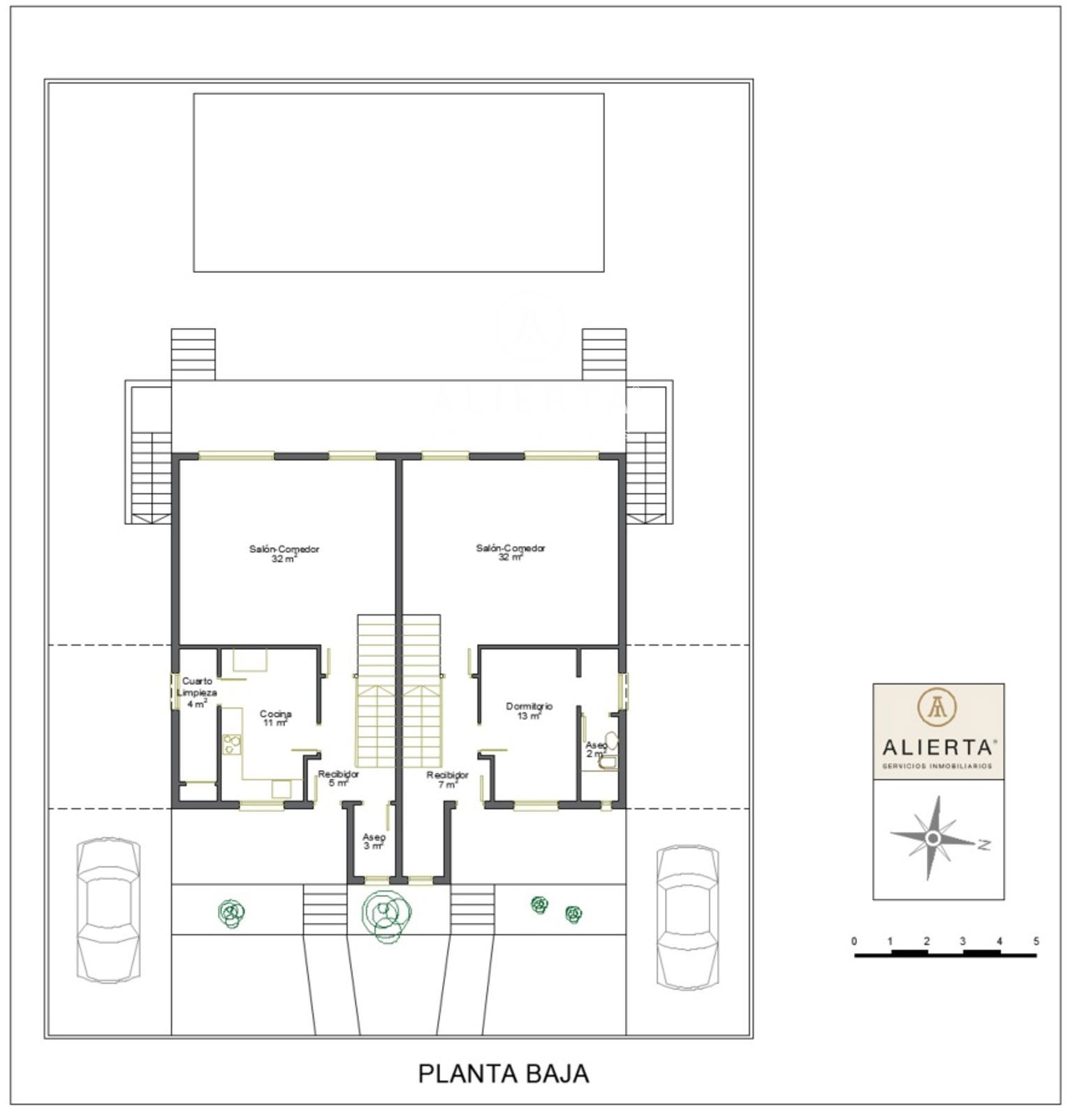 Viviendas de 240 m2 y 242 m2 construídos, respectivamente, en cuatro plantas; semi sótano, baja, primera y bajo cubierta. Unidas interiormente, pero con posibilidad de hacer dos viviendas totalmente independientes compartiendo la zona de jardín.