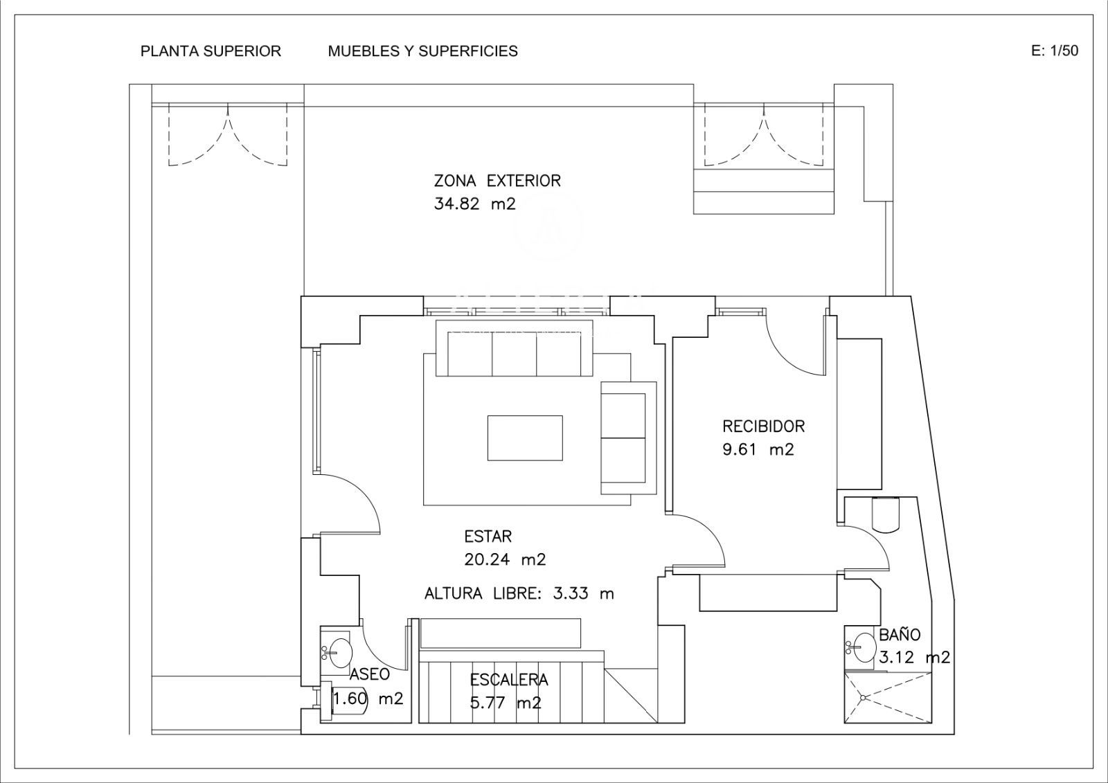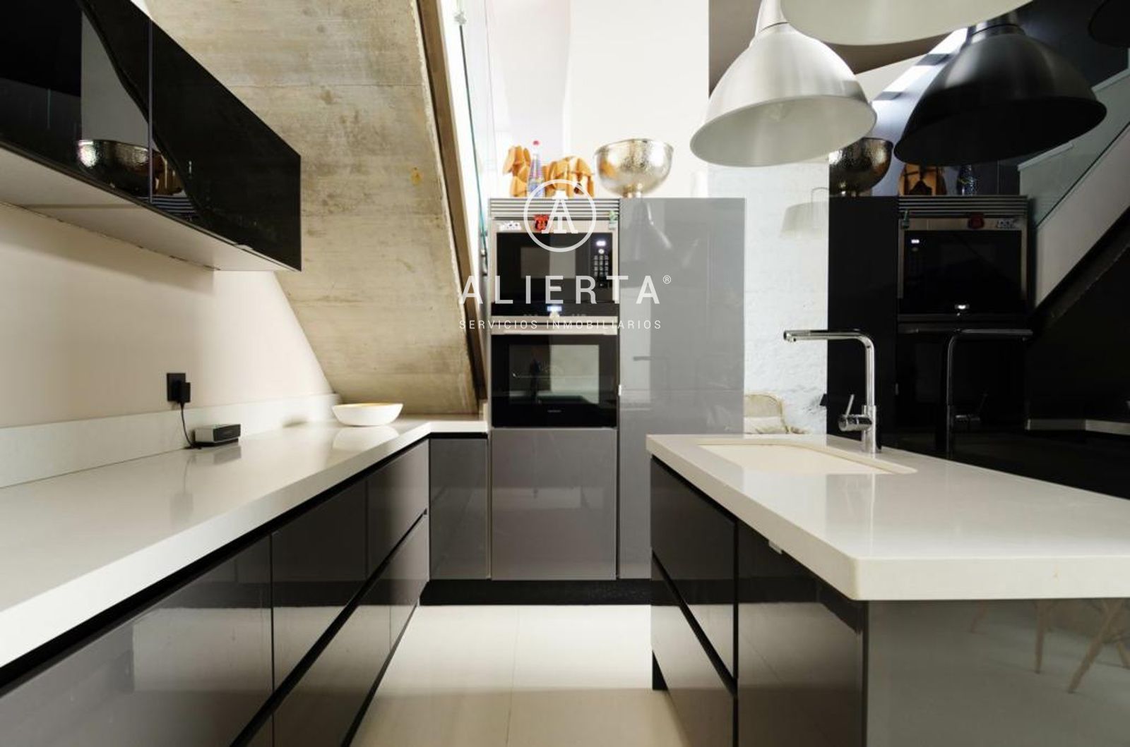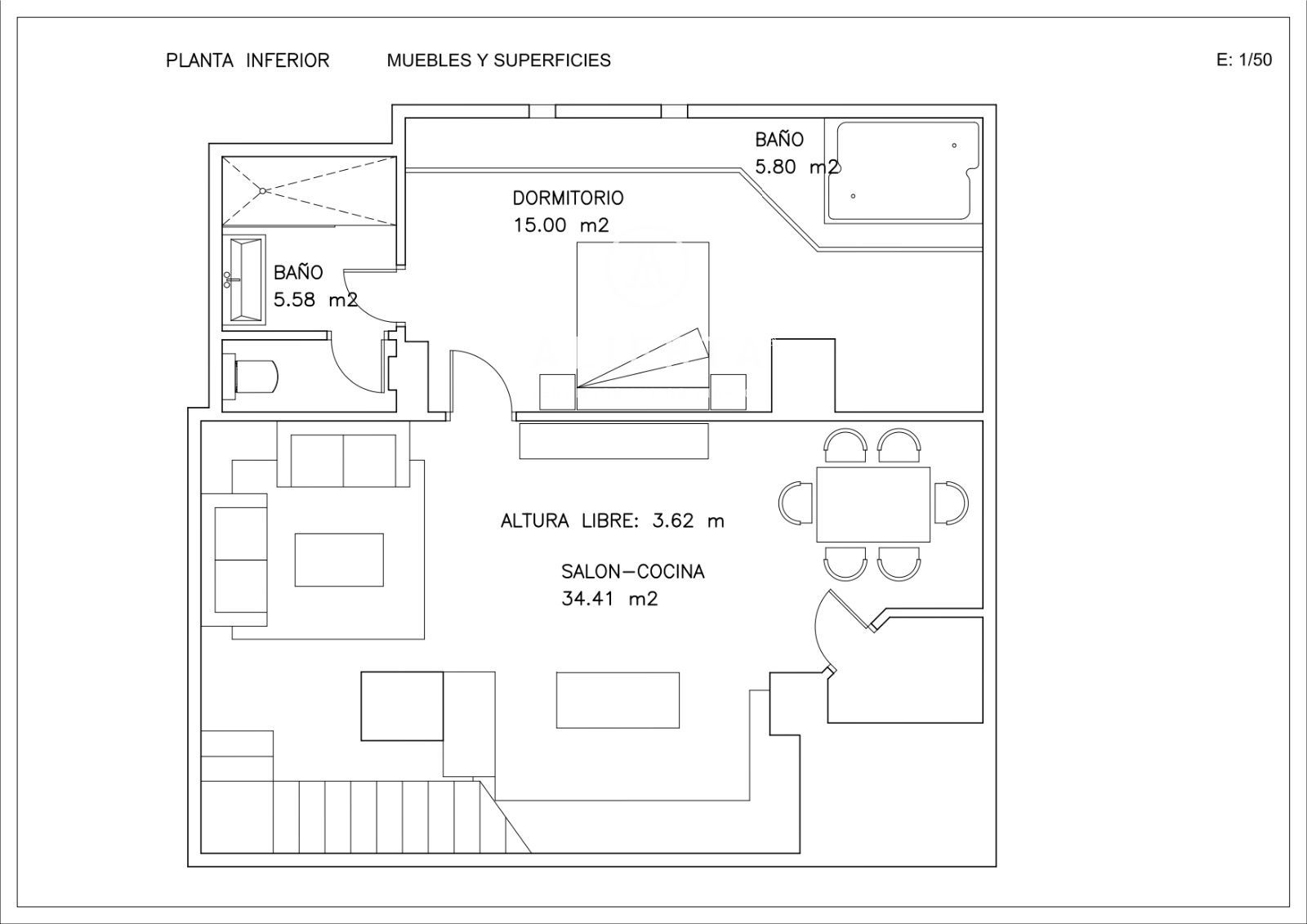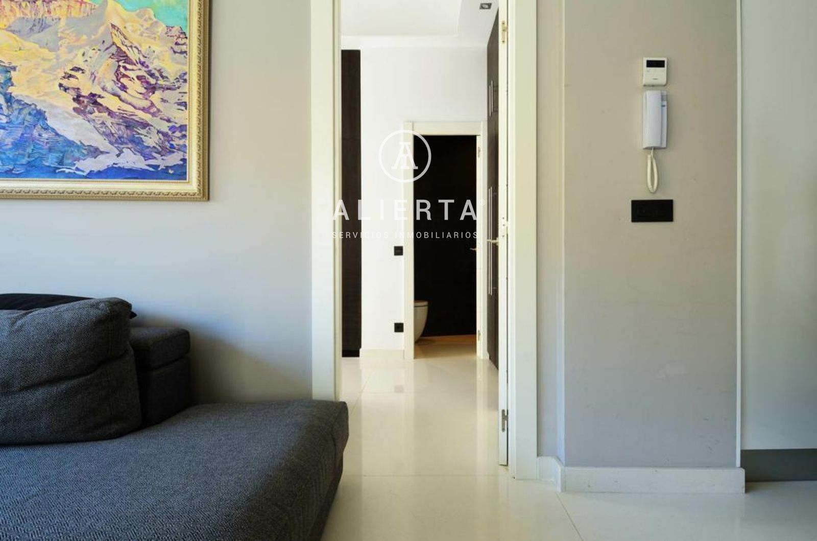 Superficie de unos 110 m2 más terraza-jardín de 36 m2. Dos salones, uno de ellos con cocina en concepto abierto, dos dormitorios, los dos tipo suite, el principal además con vestidor, aseo en planta calle.