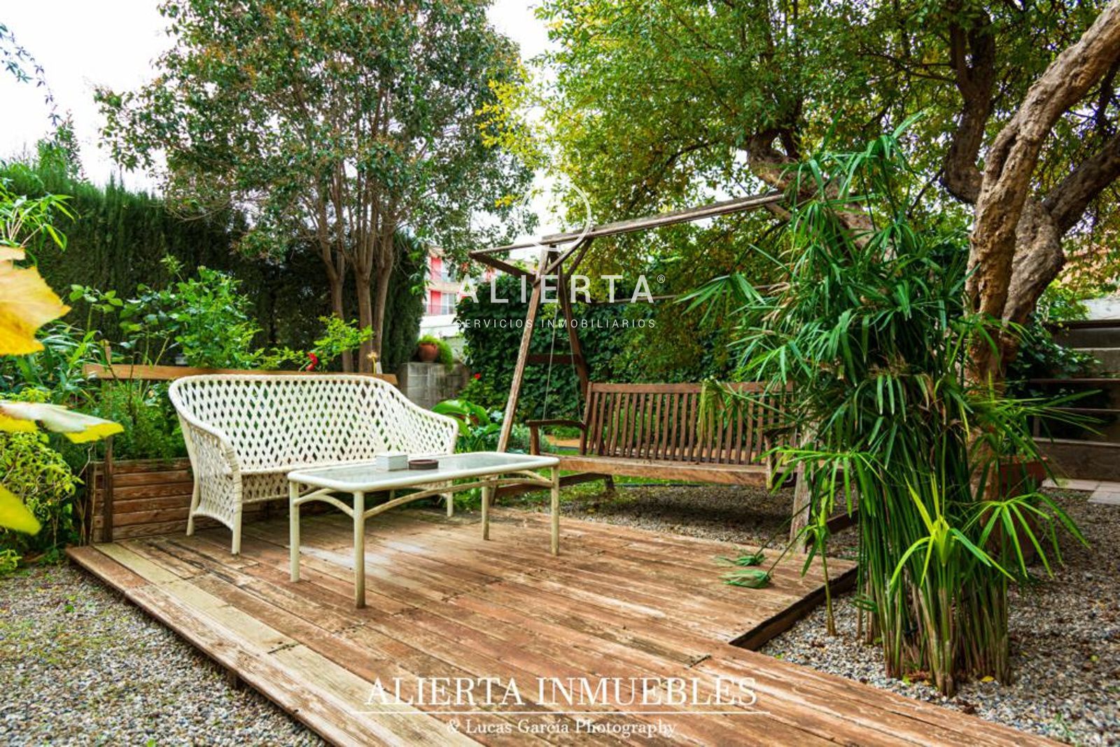 Jardín de unos 250 m2 comunicado con la parte delantera de la