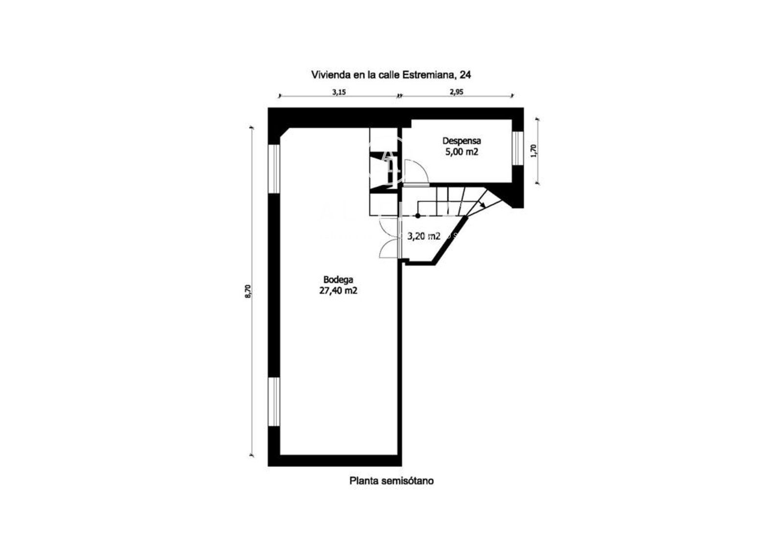 Planta semisótano: Bodega con chimenea, ventilación y luz natural, y despensa.