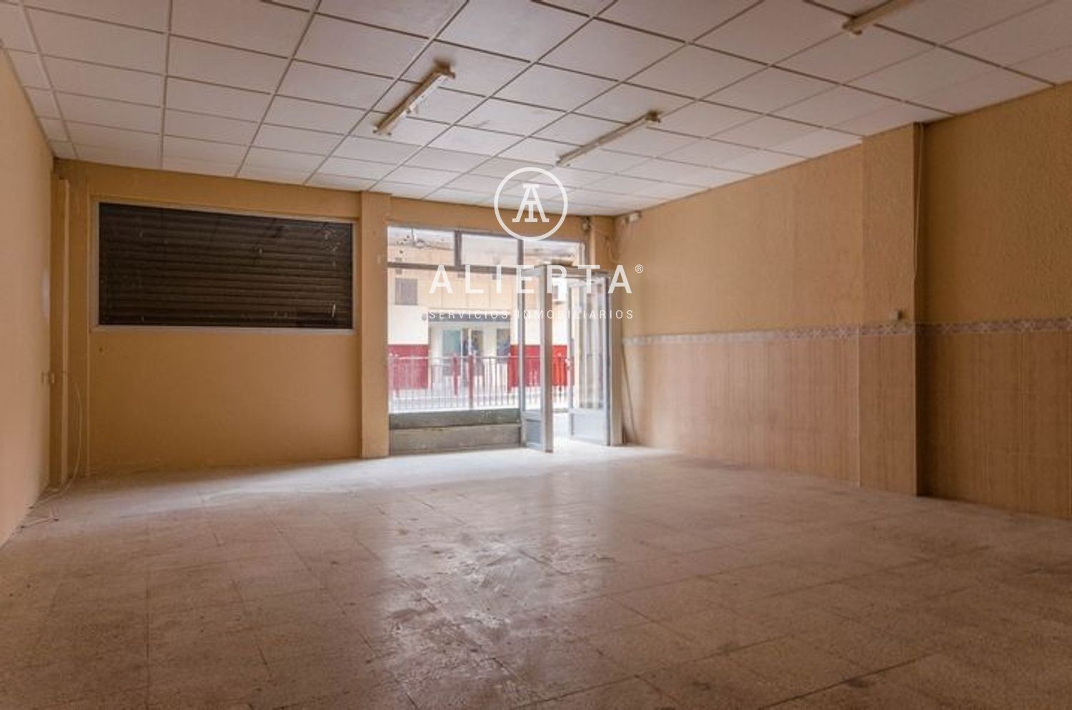 Local en planta calle con techos de gran altura y en buen estado de sus instalaciones. Forma rectangular sin ángulos ni recovecos. Consta de espacio diáfano principal de unos 40 m2, almacen-oficina y baño. Techos altos y lucha luz natural.